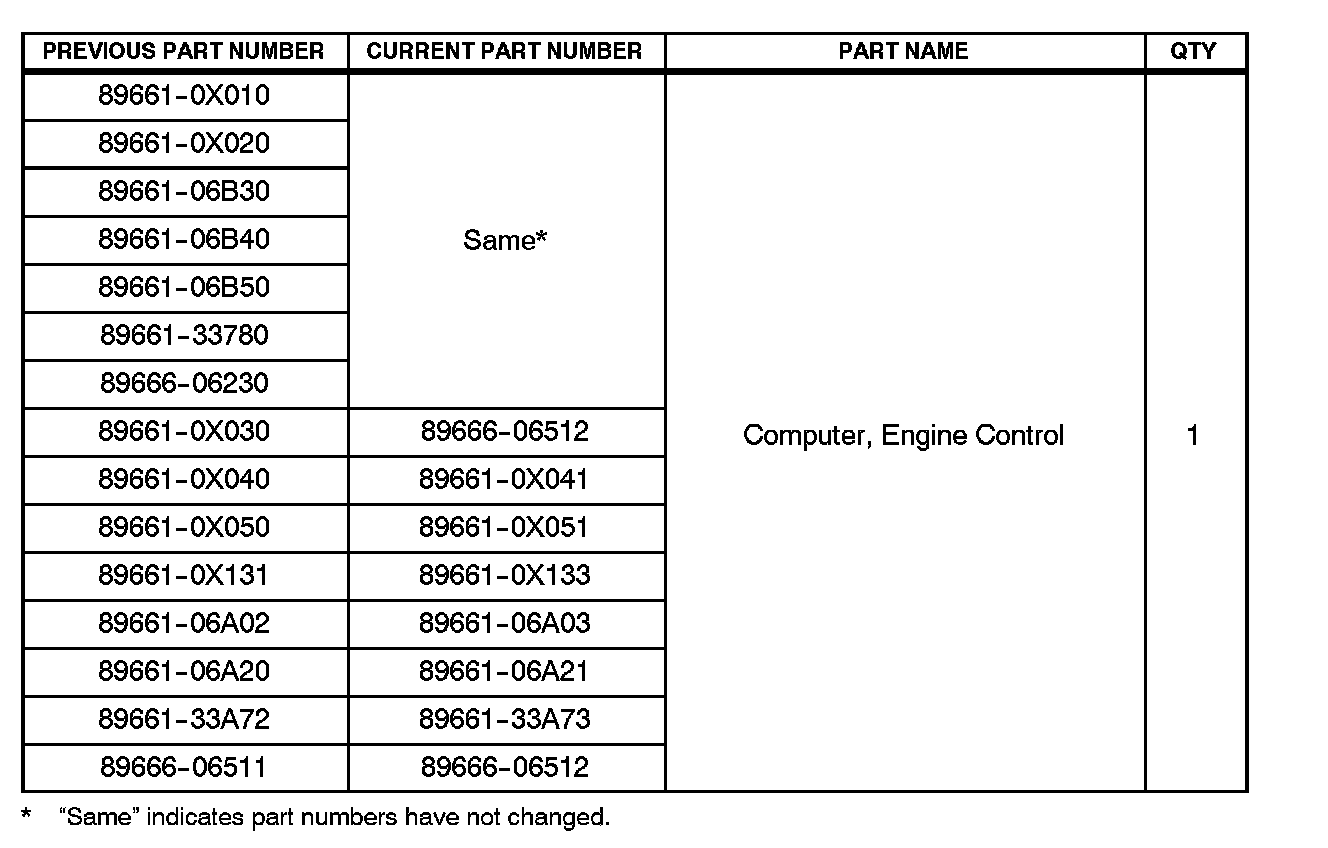 ^ 2003 - 2004 model year Camry and Solara vehicles equipped with 2AZ-FE engine produced BEFORE the Production Change Effective VINs shown below.