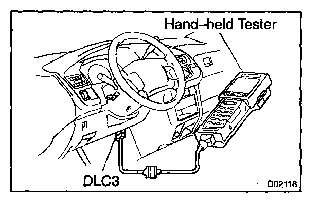 1. Connect the scan tool (OBD II scan tool or hand- held tester) to the DLC3 at the lower part of the instrument panel.