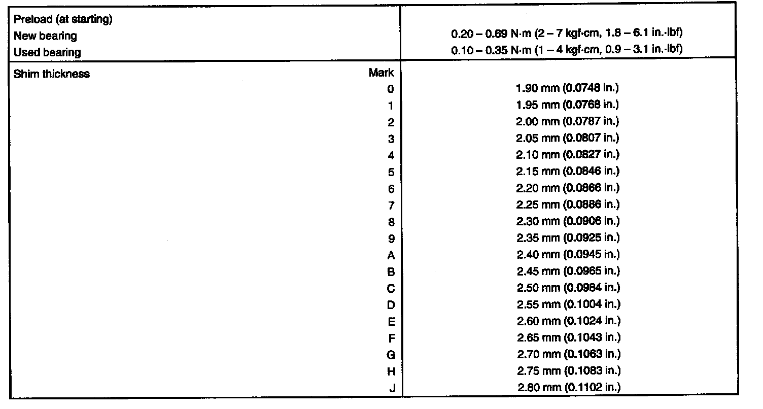 TORQUE SPECIFICATION