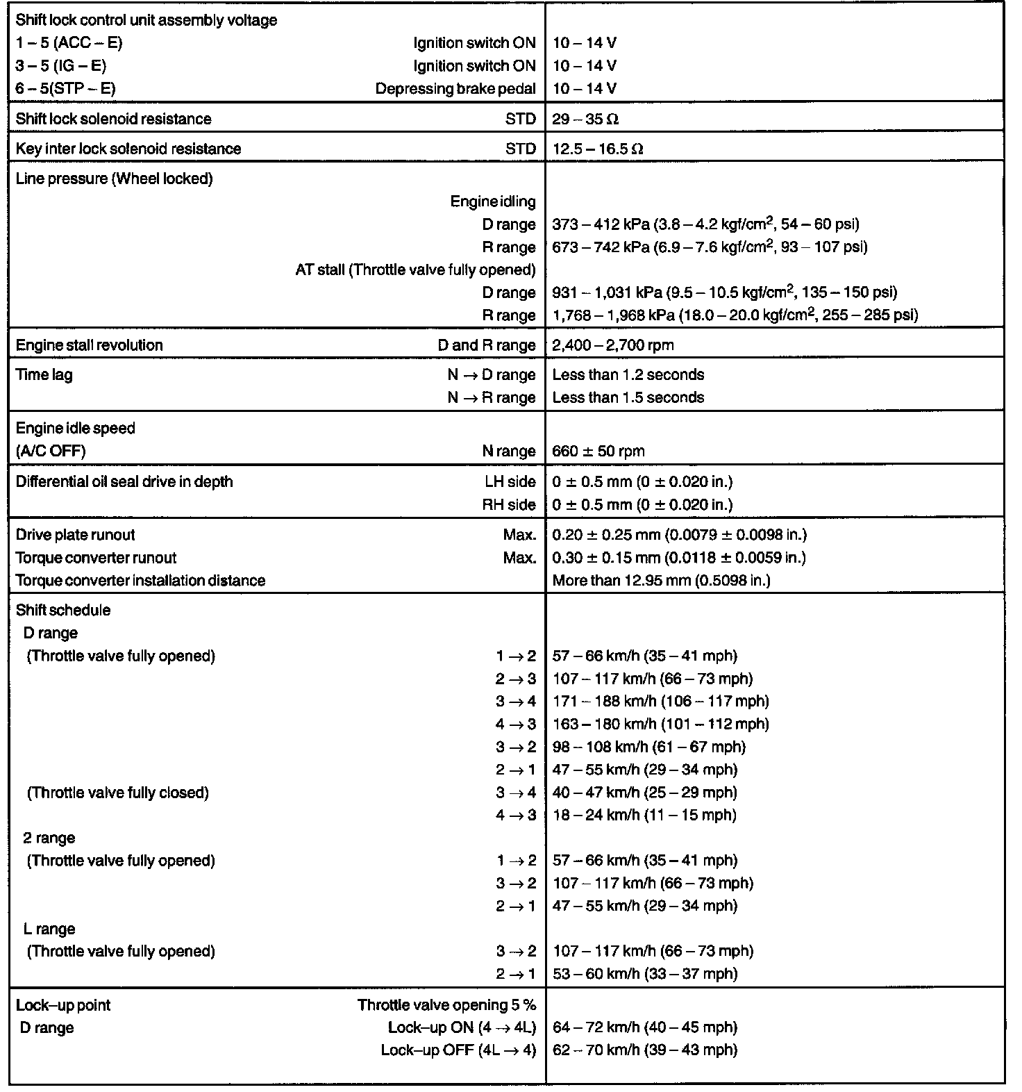 AUTOMATIC TRANSAXLE (U241E) SERVICE DATA: