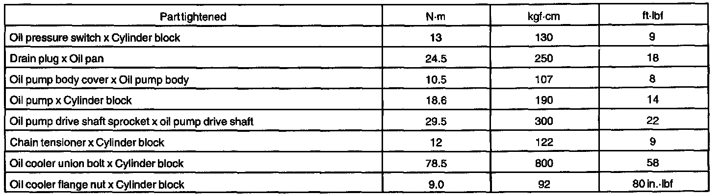 TORQUE SPECIFICATION: