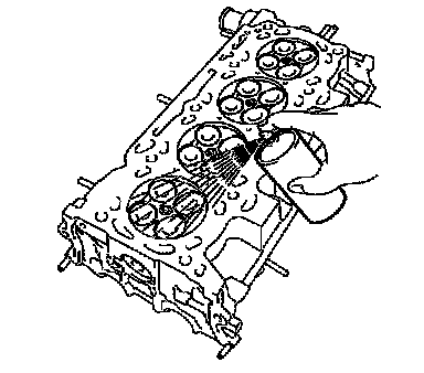 Using a dye penetrate, check the combustion chamber, intake ports, exhaust ports and cylinder block surface for cracks.