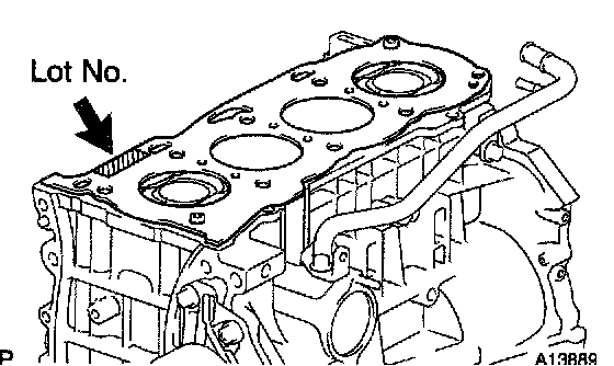 1) Place a new cylinder head gasket on the cylinder block surface with the lot No. upward.