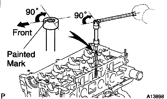 4) Retighten the cylinder head bolts 90° in the numerical order shown.