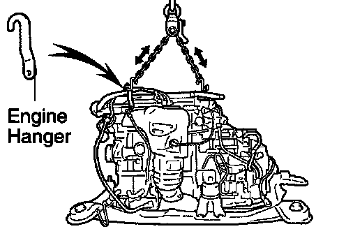 CAUTION:: Do not hook the chain to any other part when hanging the engine.