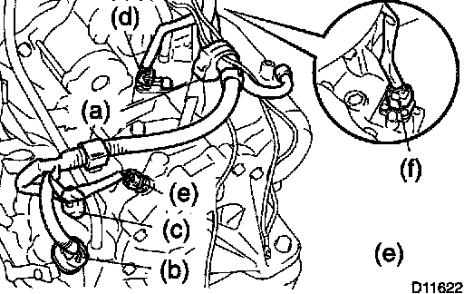 c. Using SST and spanner, disconnect the oil cooler tube.