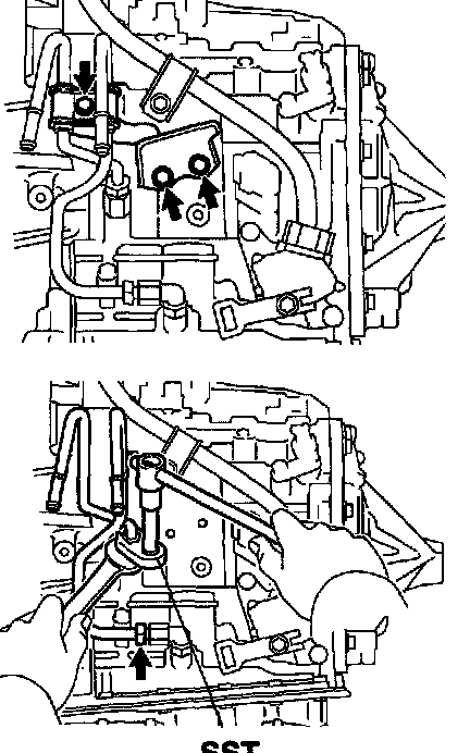 2. DISCONNECT 2 OIL COOLER HOSES FROM TRANSAXLE
