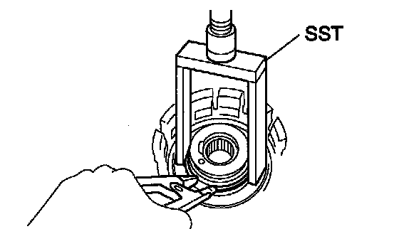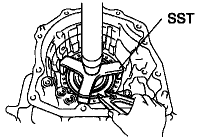e. Using SST, remove the needle roller bearing.
