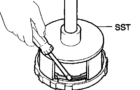 a. Using SST, a press and a screwdriver, remove the snap ring.