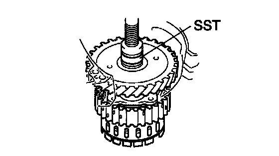 a. Using SST, a press and a snap ring expander, remove the snap ring and piston return spring.