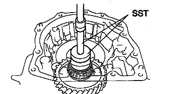 a. Using SST, remove the cylindrical roller bearing from the transaxle case.