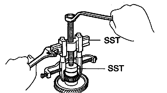 c. Using SST, remove the tapered roller bearing RH.