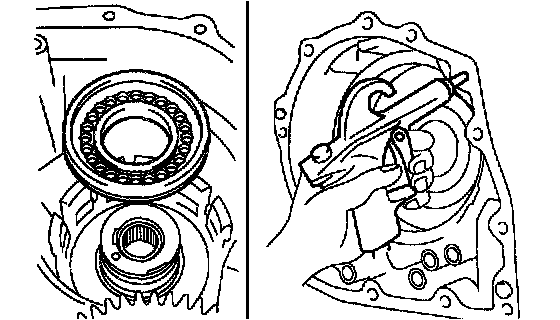 d. Using a brass bar and a hammer, remove the 2 bearing outer races.