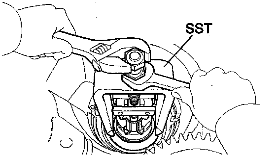 b. Using SST, remove the lock nut.