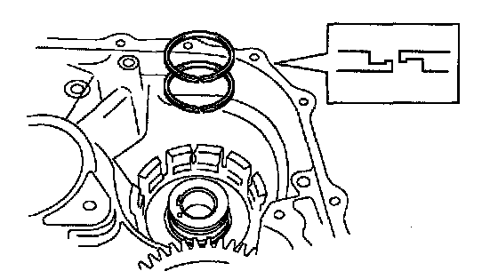 d. Remove the 2 oil seal rings from the transaxle case.