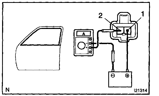 b. Connect the positive (+) lead from the ammeter to terminal 2 on the wire harness side connector and the negative (-) lead to negative terminal of the battery.