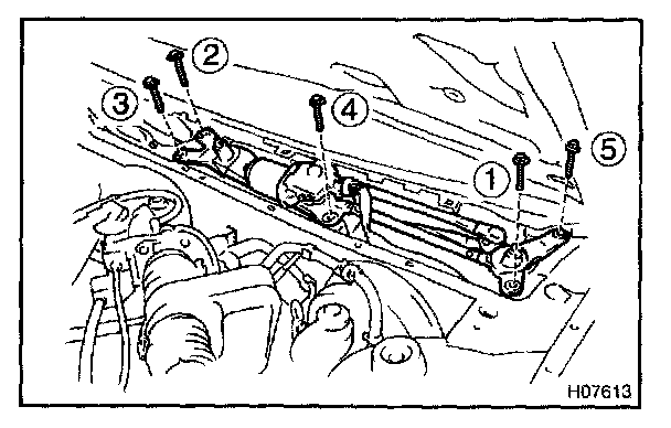 b. Remove the 5 bolts and wiper link assembly.