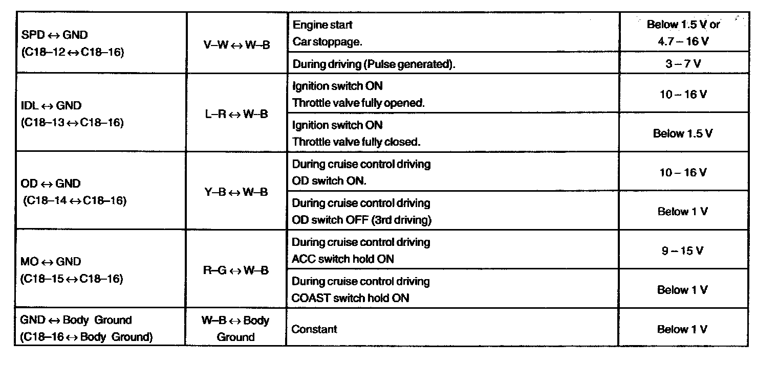 Pinout Values and Diagnostic Parameters