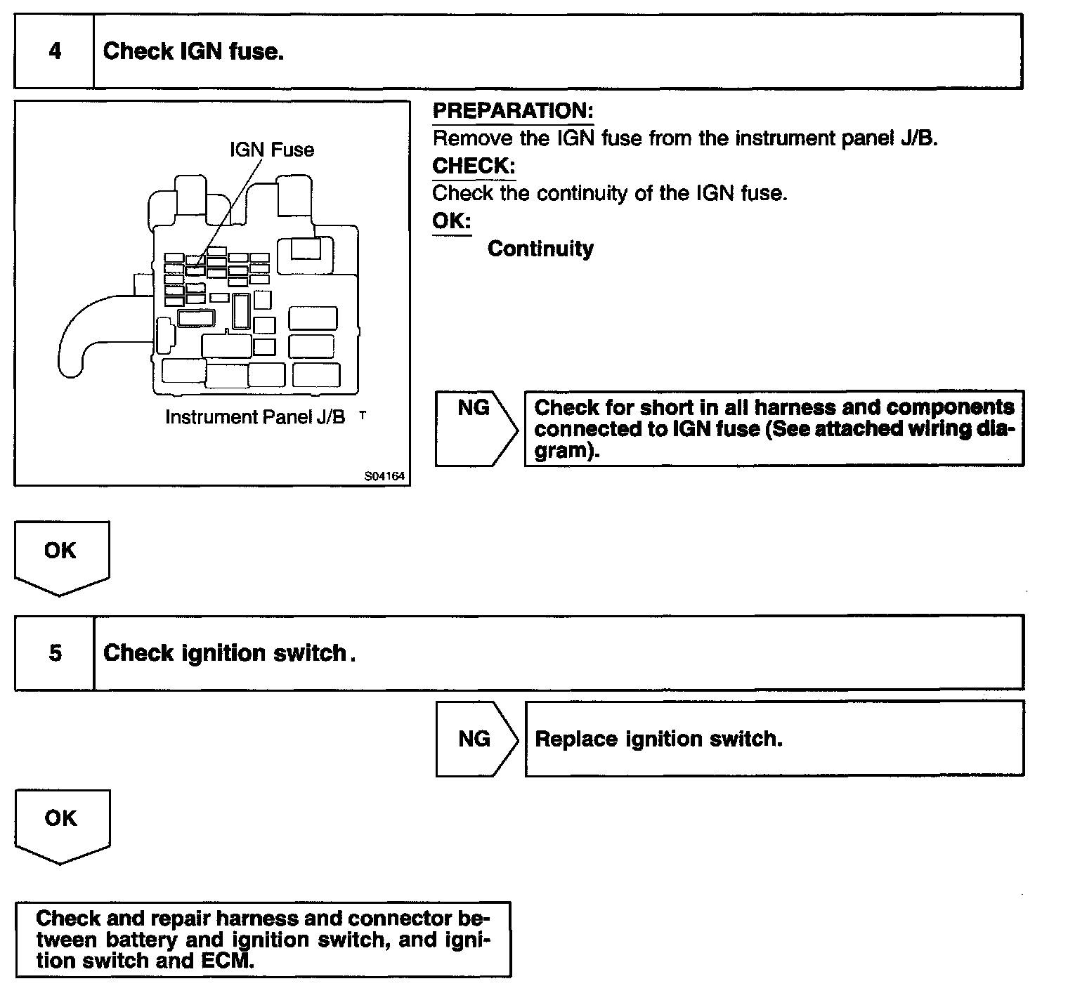 CIRCUIT INSPECTIONWhen the ignition switch is turned ON, battery positive voltage is applied to terminal IGSW of the ECM and the EFI main relay (Marking: EFI) control circuit in the ECM sends a signal to terminal MREL of the ECM switching on the EFI main relay.