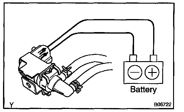 2. Connect the positive (+) and negative (-) leads from the battery to the VSV terminals for the EVAP.
