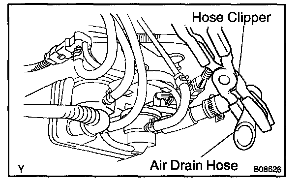 1. Close off the air drain hose at the marked position of the canister with a hose clipper or similar instrument.