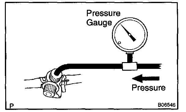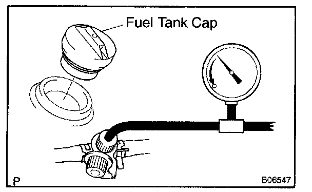 HINT: If you can't add pressure, you can conclude that the hose connecting the VSV canister fuel tank has slipped off or the VSV is open.