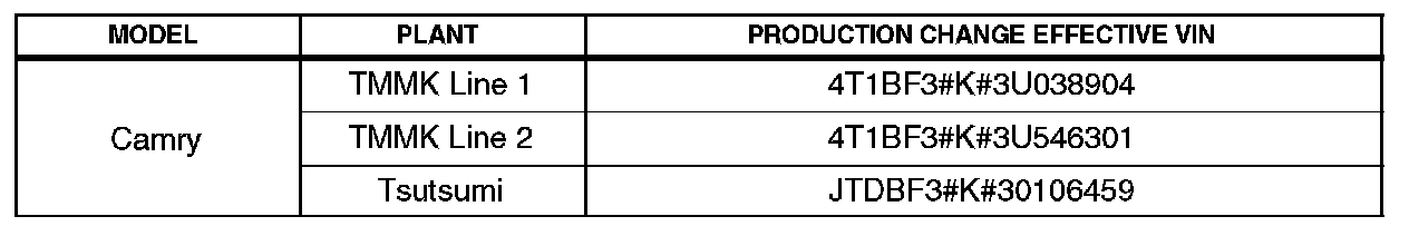 ^ 2003 model year Camry vehicles with 1MZ-FE engine produced BEFORE the Production Change Effective VINs shown below.