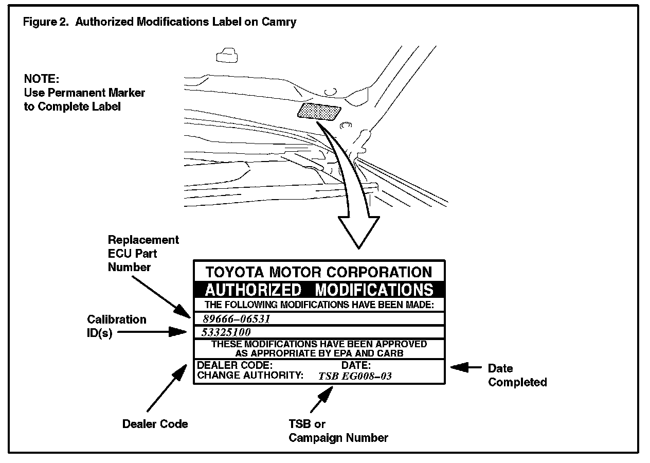 3. After flash reprogramming ECM, enter the following information on the Authorized Modifications Label using a permanent marker.