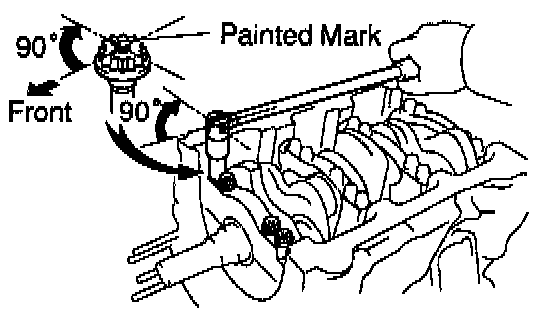c. Mark the front of the main bearing cap bolts with paint.