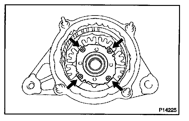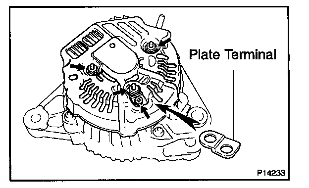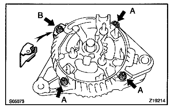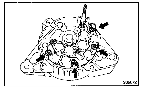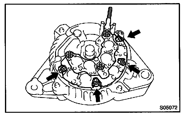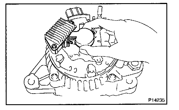 b. Remove the 5 screws, brush holder and voltage regulator.