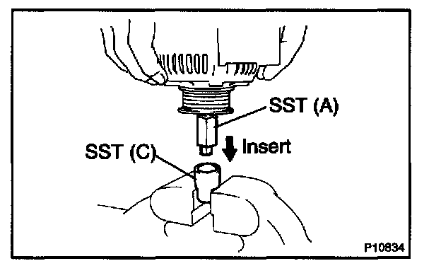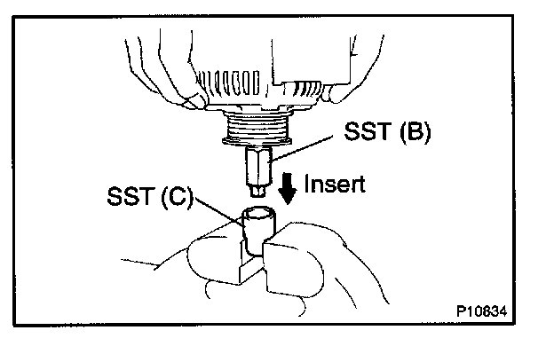 e. Insert SST (B) into SST (C), and attach the pulley nut to SST (C).