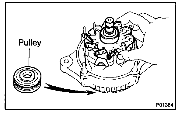 a. Place the rectifier end frame on the pulley.