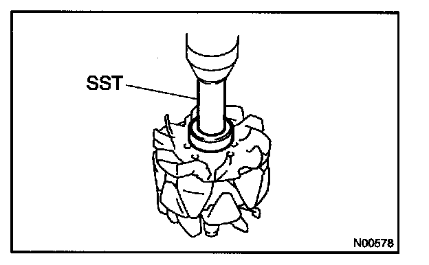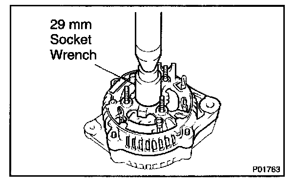 b. Using a 29 mm socket wrench and press, slowly press in the rectifier end frame.