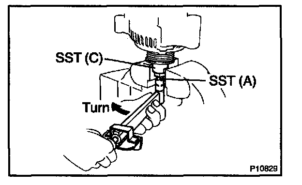 c. Check that SST (A) is secured to the pulley shaft.