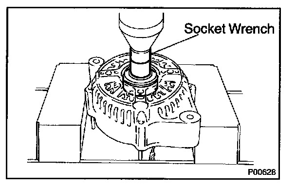 b. Using a socket wrench and press, press out the bearing.