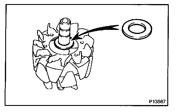 a. Place the generator washer on the rotor.