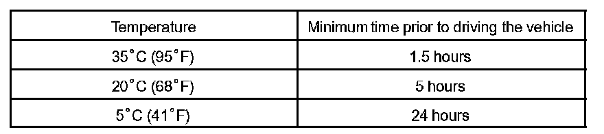 NOTE: Take care not to drive the vehicle during the time described in the table.