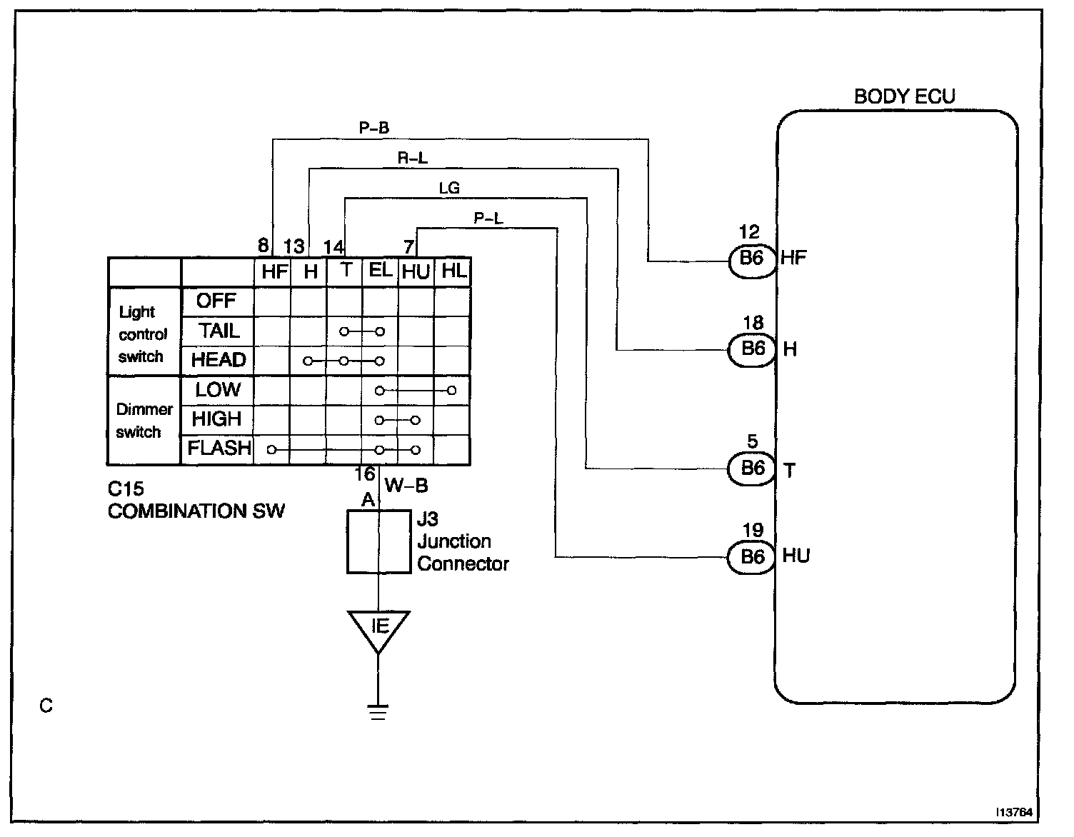This circuit detects the state of the light control switch.