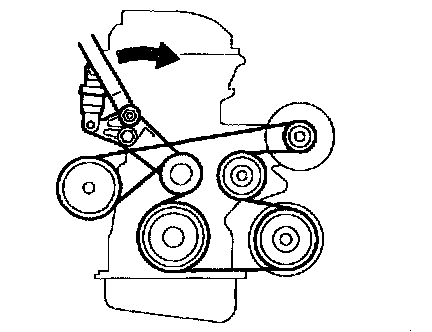 a. Turn the V-ribbed belt tensioner slowly clockwise and loosen it. Then, remove the fan and generator V belt and put back the V-ribbed belt tensioner little by little and fix it quietly.