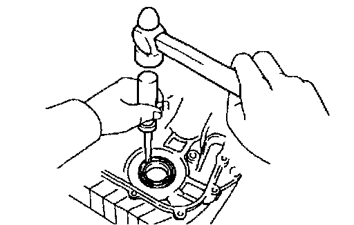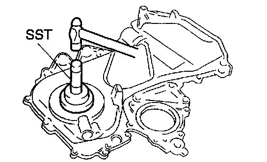 b. Using SST, tap in the oil seal until its surface is flush with the timing chain cover edge.