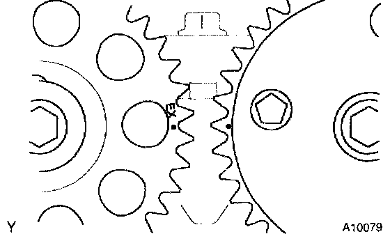 1. Turn the hexagonal wrench head portion of the camshafts, and align the point marks of the camshaft timing sprockets.