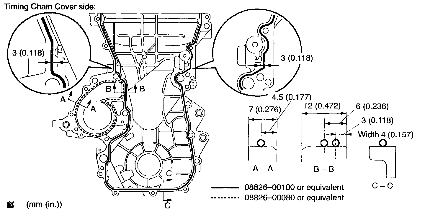 b. Apply seal packing in the shape of bead Diameter 3.5 mm - 4.5 mm (0.1379 - 0.177 inch)) consequently as shown in the illustration