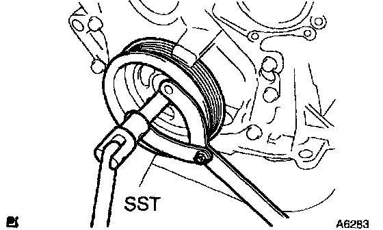 a. Using SST, remove the pulley bolt.