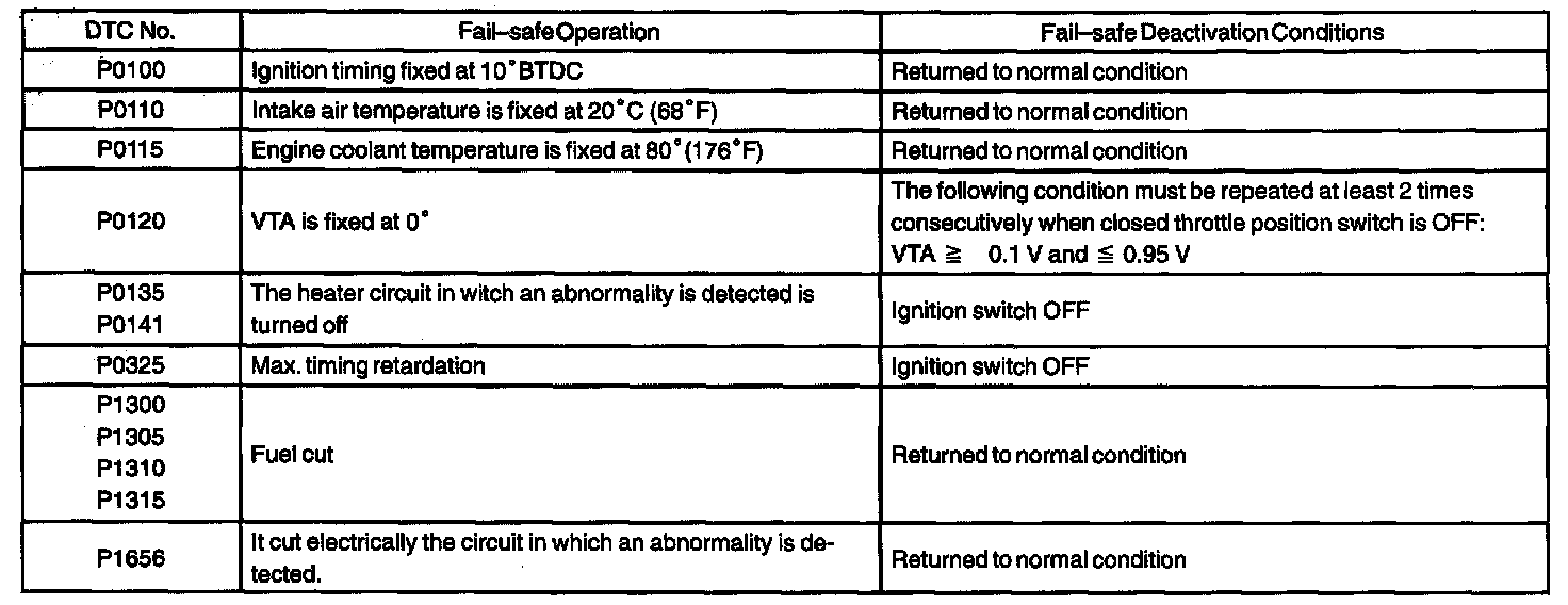 If any of the given codes is recorded, the ECM enters fail-safe mode.
