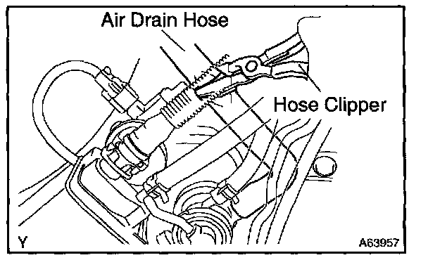 1. Close off the air drain hose at the marked position of the canister with a hose clipper or similar instrument.