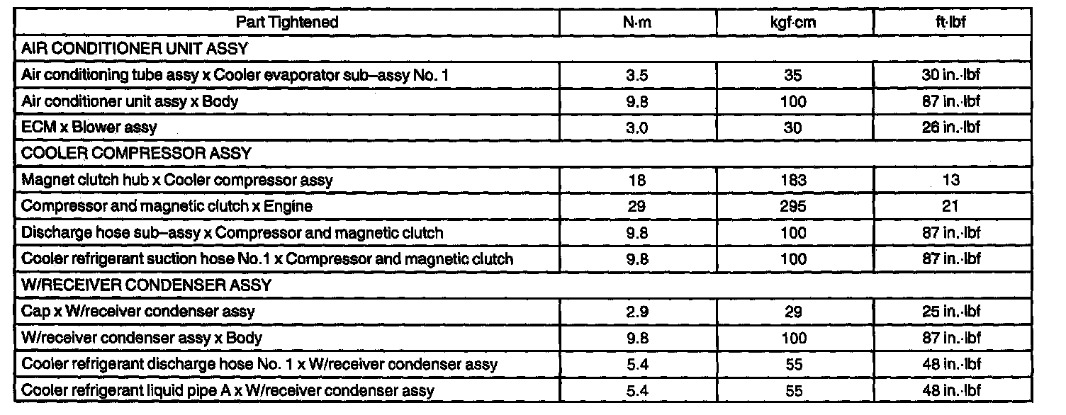 Heater and Air Conditioner - Torque Specification: