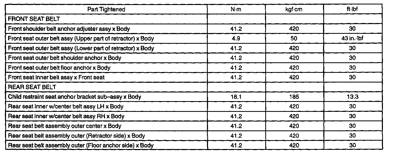 Seat Belt - Torque Specification: