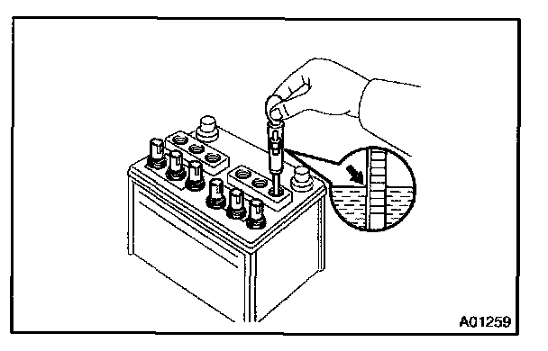 2. CHECK BATTERY SPECIFIC GRAVITY (Except Maintenance-Free Battery)