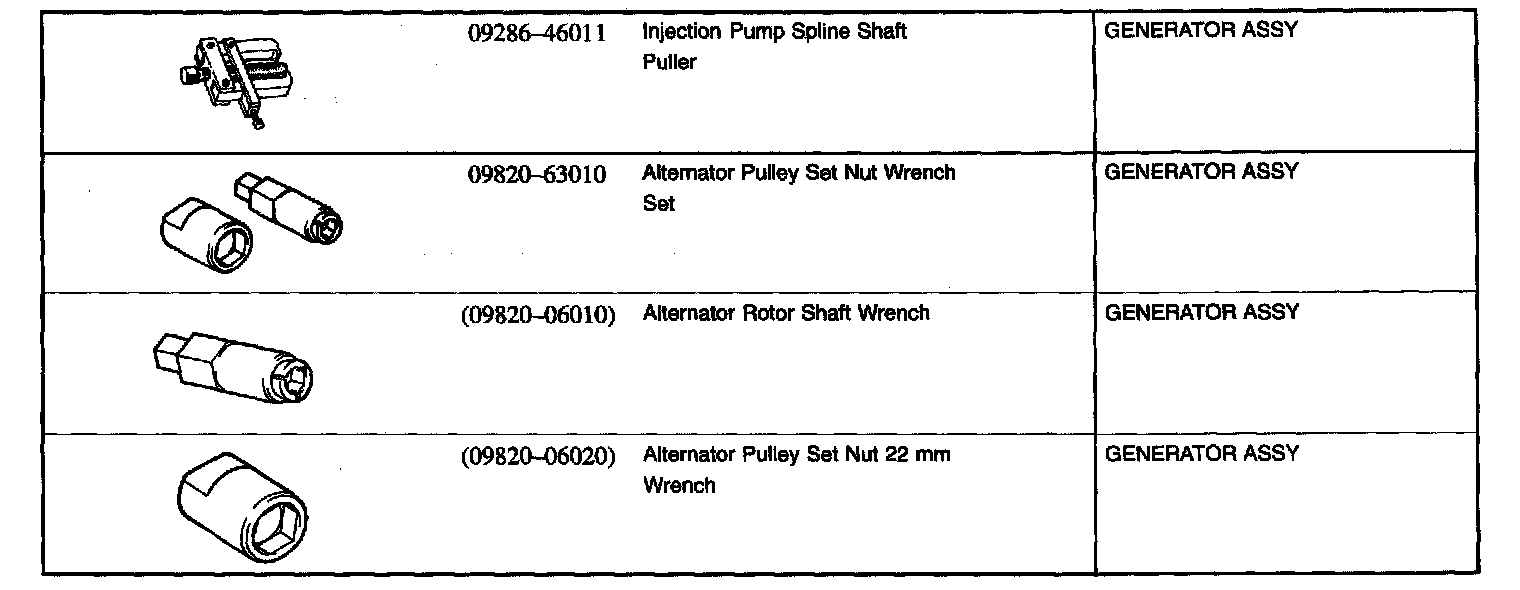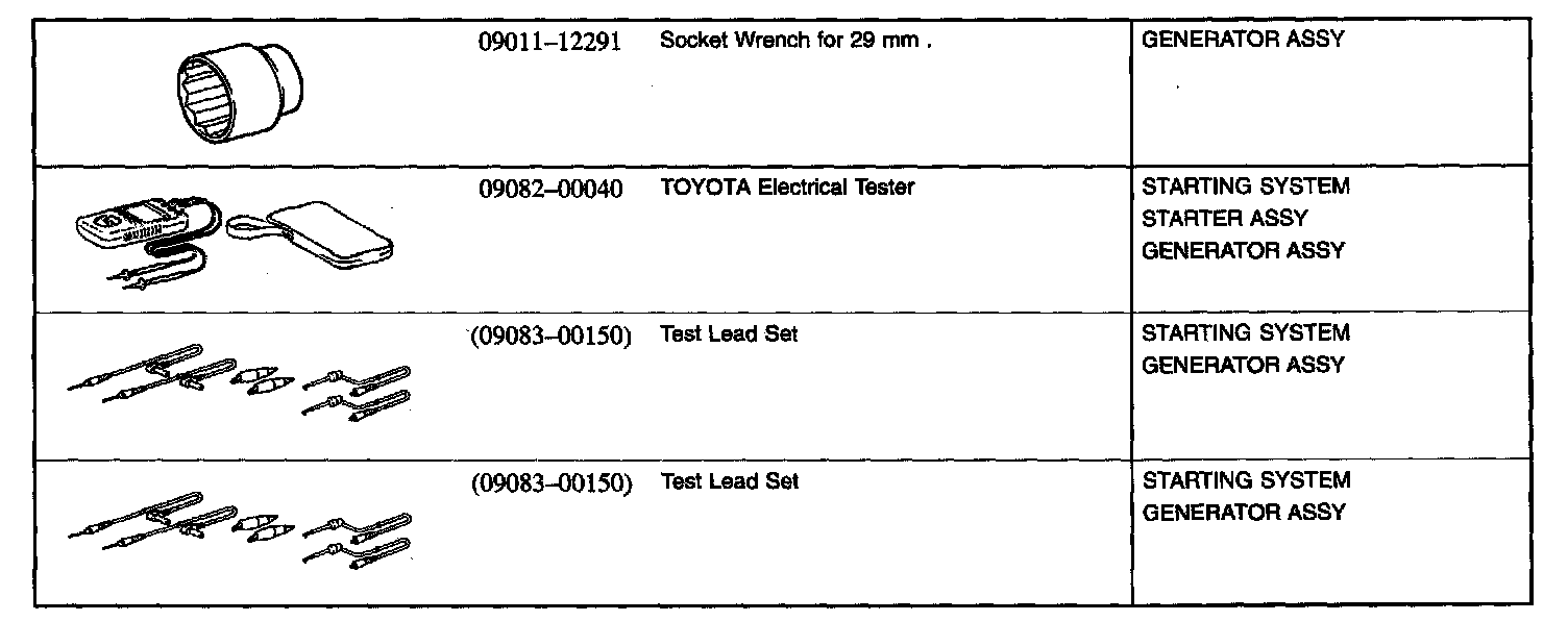 Starting and Charging - Recommended Tools: