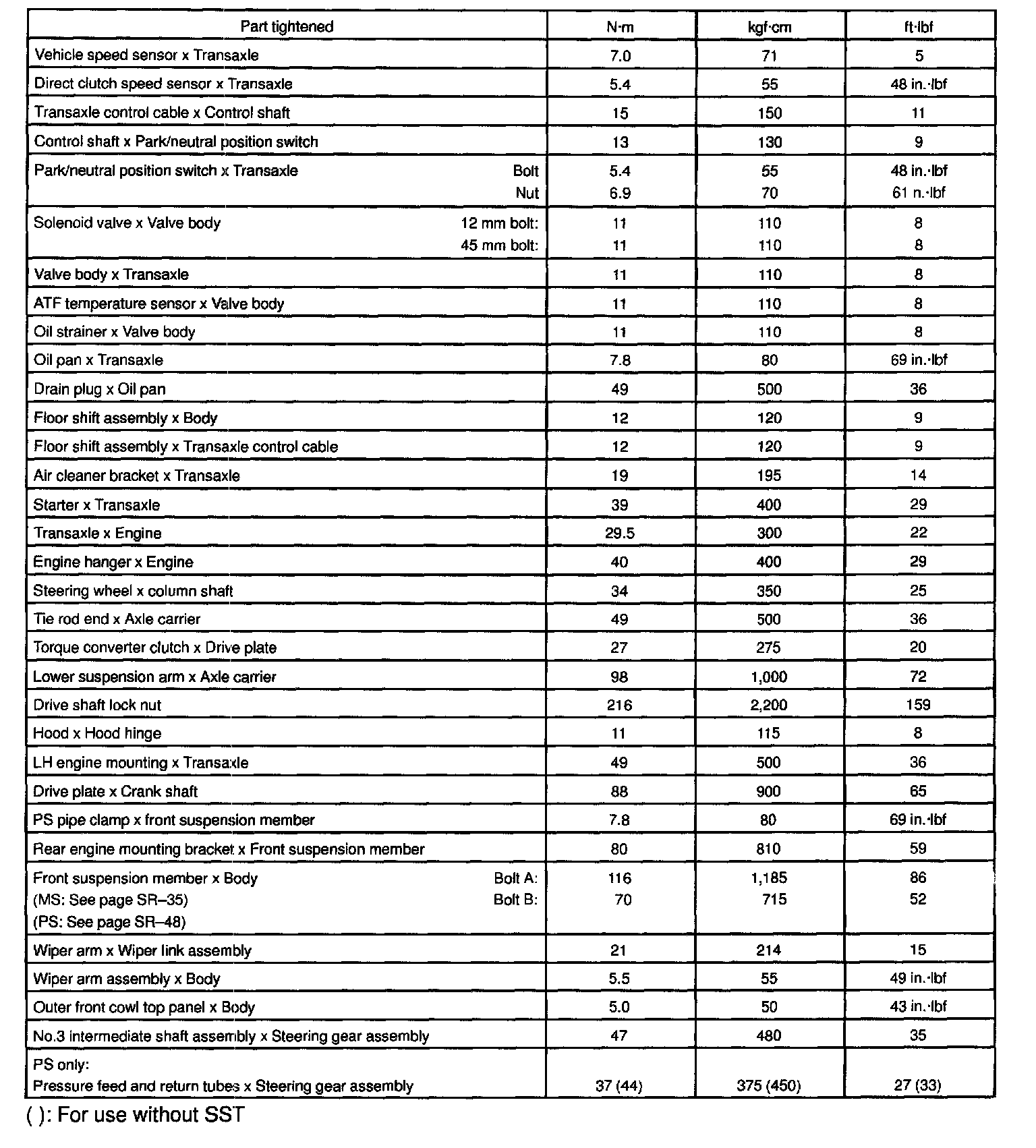 TORQUE SPECIFICATION